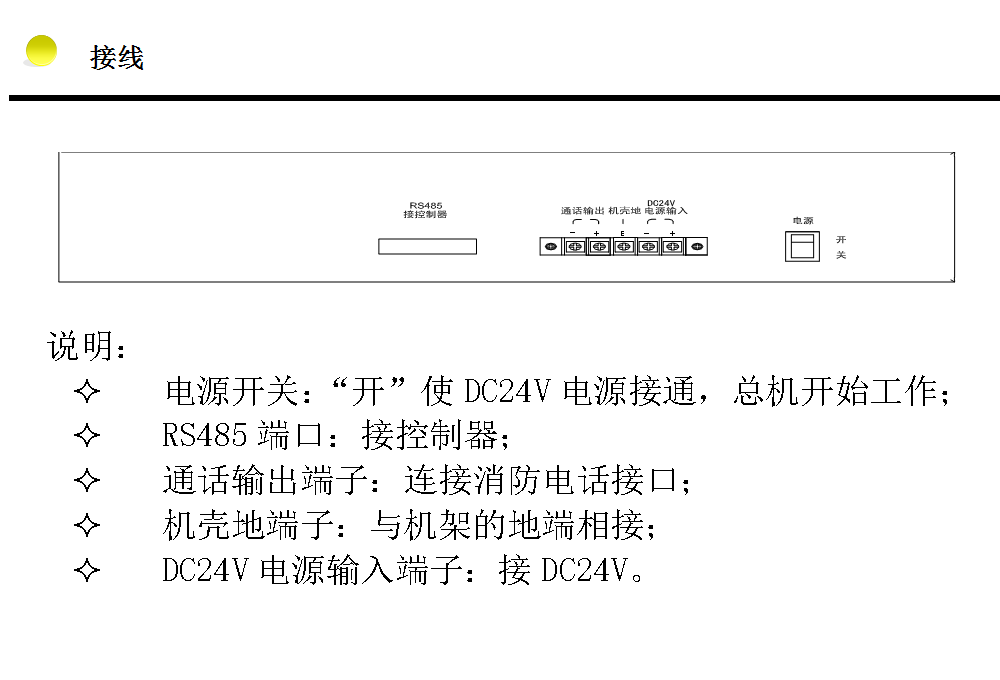 ² 每個(gè)GST-TS-Z01A型消防電話總機(jī)需要使用0.5A的DC24V聯(lián)動(dòng)電源。