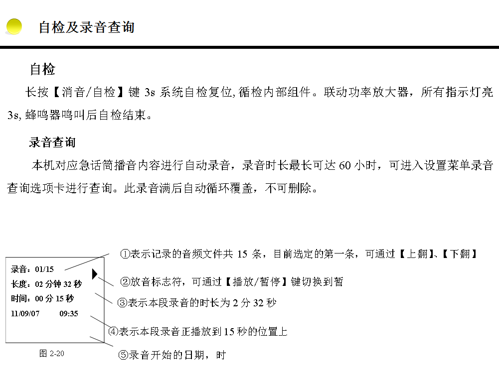 此播音模式播放的是外接音源中的音頻文件,按【外線】鍵進入外線播音模式,作為背景音源,功率放大器輸出音量可調(diào)。
