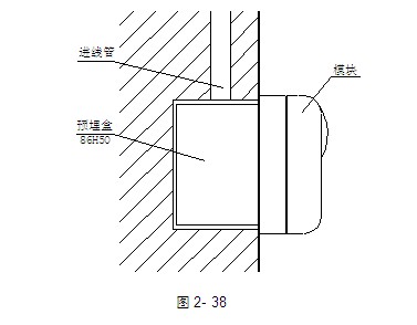 本編址接口模塊采用明裝,當(dāng)進(jìn)線管預(yù)埋時(shí),可將底盒安裝在86H50型預(yù)埋盒上,安裝方法如圖2-38;當(dāng)進(jìn)線管明裝時(shí),采用B-9310型后備盒安裝方式,具體使用方法見第二章3.6節(jié)的B-9310。底盒與上蓋間采用拔插式結(jié)構(gòu)安裝,拆卸簡單方便,便于調(diào)試維修。