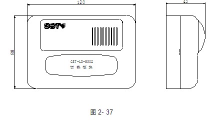 GST-LD-8302海灣切換模塊的外形尺寸及結(jié)構(gòu)示意圖如圖2-37所示。