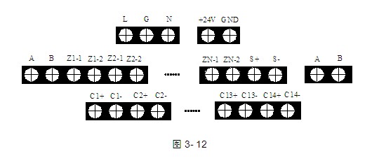 C1+、C1-~C14+、C14-:控制盤輸出端子(***多14路)。
