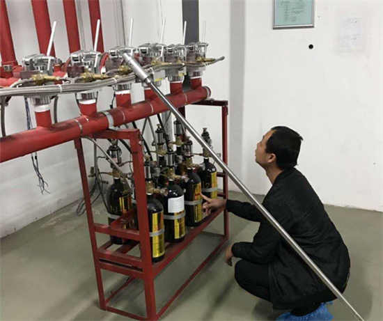 2.逐個(gè)對(duì)滅火劑瓶組進(jìn)行壓力檢測(cè),壓力表示值應(yīng)在綠區(qū)內(nèi);