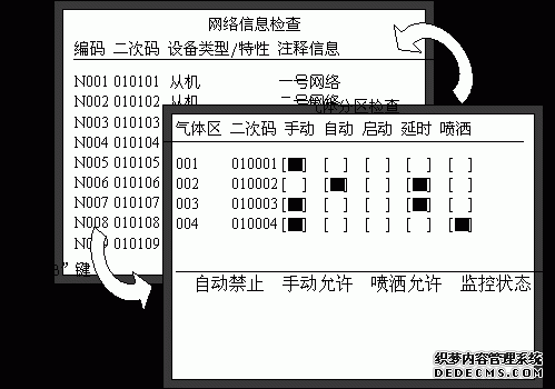 在網(wǎng)絡(luò)設(shè)備檢查界面按下“TAB”鍵,則可以在網(wǎng)絡(luò)設(shè)備檢查和氣體分區(qū)狀態(tài)檢查界面進行切換。如圖8-8所示。