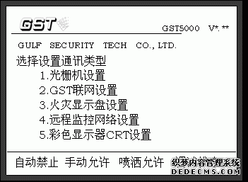 JB-QB-GST500、JB-QG/QT-GST5000火災(zāi)報警控制器(聯(lián)動型)(以下簡稱為控制器)通過與不同功能的網(wǎng)卡聯(lián)接可以實現(xiàn)GST系列 控制器間的聯(lián)網(wǎng);通過光柵測溫通訊板與光柵測溫機通訊,實現(xiàn)光柵測溫機的火警與故障檢測;也可與CRT顯示系統(tǒng)聯(lián)接完成圖形化監(jiān)控?刂破鲗νㄓ嵖ㄟ\行狀 態(tài)進行實時監(jiān)測,實現(xiàn)即插即用。GST500/ GST5000控制器界面顯示相同,以GST5000控制器顯示界面為例說明。1.2通訊系統(tǒng)的連接